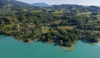 Der gemütliche Wohnbereich setzt sich aus einem Wohnzimmer mit Sofa und einer ausgestatteten, offenen Küche (Geschirr, Mikrowelle, elektrische Kaffeemaschine, Kühlschrank, Kochplatten...) zusammen. Die Küche ist vom Wohnzimmer durch eine Esstheke getrennt. Die große Glasfront mit Schiebetüre schafft einen fließenden Übergang zur Terrasse und vergrößert so Ihren Wohnraum.