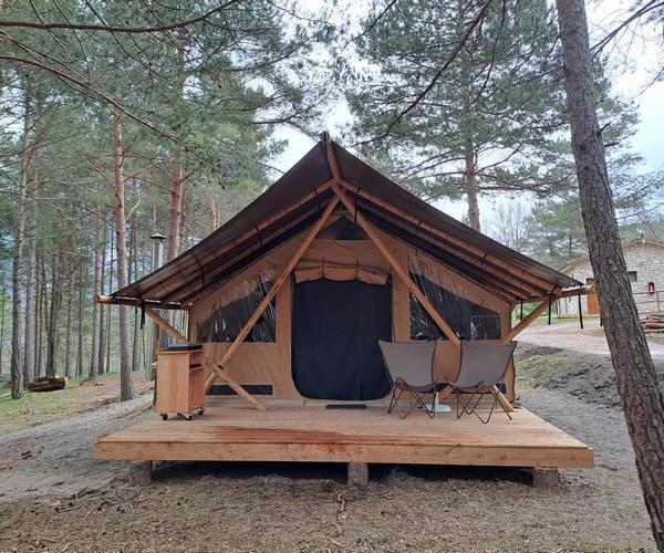 Das Trappeur Zelt verbindet das authentische Campen mit modernem Komfort. Unter den Bäumen des katalanischen Waldes ermöglicht Ihnen dieses Zelt, gänzlich in die Natur einzutauchen und von den Vorteilen des Ready-to-Camp zu profitieren. Ein unvergesslicher Aufenthalt zwischen Abenteuer und Komfort, ideal für Familien!
