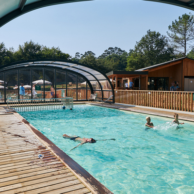 Auf dem Camping Huttopia Caminos de Galicia finden Sie einen Badebereich mit einem beheizten überdachten Pool mit integriertem Planschbecken, perfekt für die ganze Familie, und einen unbeheizten Außenpool für die sonnigen Tage. Nach dem Baden entspannen Sie auf einem Liegestuhl und genießen die Natur rundherum. Ein Treffpunkt für Spaß, Entspannung und Geselligkeit. (