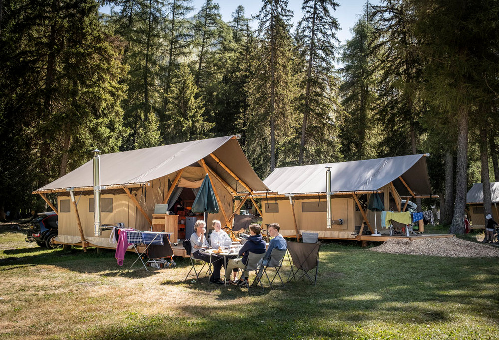 Inspiriert von den Unterkünften der nordischen Trapper, begeistert das Canadienne Zelt mit seinem authentischen Stil und einem Holzofen für wohlige Wärme.