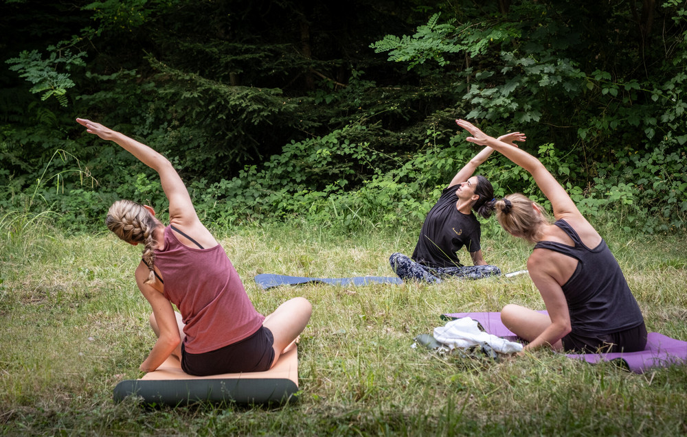 Genießen Sie eine wohltuende Yogastunde unter freiem Himmel. Atmen Sie tief durch, kommen Sie zur Ruhe und lassen Sie sich von Vogelgesang und Landschaft tragen.