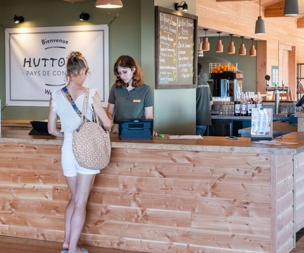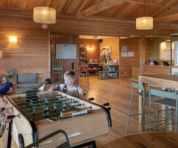 Das Centre de Vie ist der ideale Ort, um sich nach einem Tag voller Entdeckungen zu treffen. In einer warmen und freundlichen Atmosphäre machen Sie es sich bequem auf einem Sofa, um ein Buch zu lesen, fordern Sie Ihre Freunde zum Tischfußball heraus, teilen Sie Gesellschaftsspiele oder genießen Sie einfach die Terrasse mitten in der Natur. Es ist ein Ort, der den Huttopia-Geist verkörpert: Einfachheit, Geselligkeit und die Freude am Zusammensein.