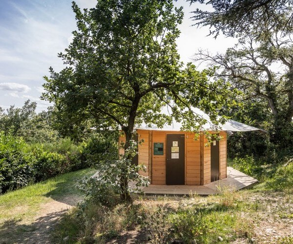 Im Huttopia Pays de Condrieu sind unsere Sanitäranlagen modern, hell und perfekt in die Natur integriert. Zwei Sanitärgebäude befinden sich direkt im Herzen des Campingplatzes, in der Nähe der Fußgänger- und Van-Confort-Plus-Stellplätze, während ein drittes Sanitärgebäude, das für Personen mit eingeschränkter Mobilität zugänglich ist, am Centre de Vie zur Verfügung steht. Unsere Teams sorgen für regelmäßige Wartung, um Räume zu garantieren, die immer sauber und angenehm sind und allen Campern optimalen Komfort bieten.