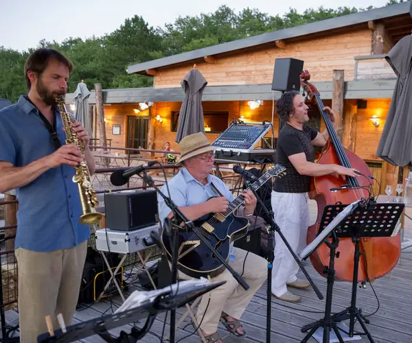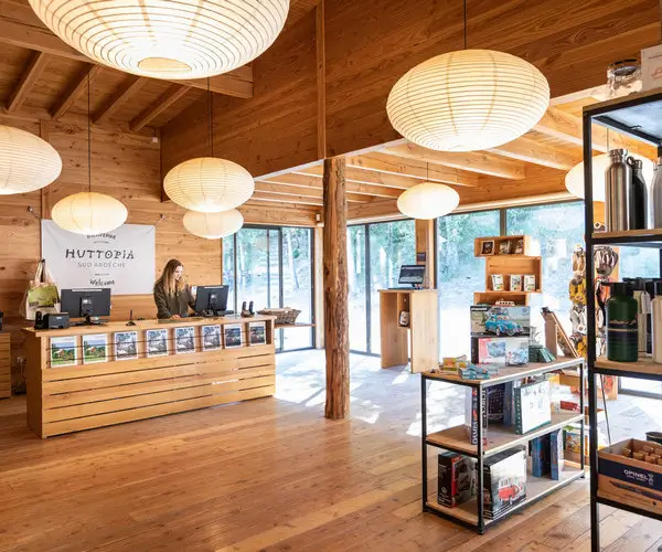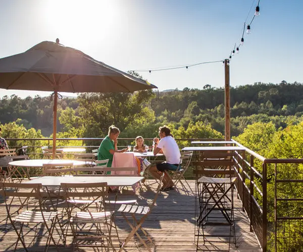 Entdecken Sie bei Huttopia Sud Ardèche Services und Orte, die für Ihren Komfort gedacht sind: frisches Brot und Gebäck, das jeden Morgen geliefert wird, ein Café-Restaurant, um hausgemachte Pizzas zu genießen. Lassen Sie sich auf der Panoramaterasse nieder und bewundern Sie die Schönheit der Ardèche-Natur beim Genießen Ihrer Mahlzeiten. Das Centre de Vie ist perfekt, um gesellige Momente mit Familie oder Freunden zu teilen.