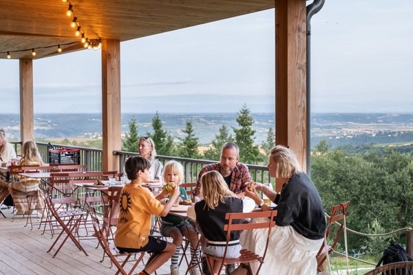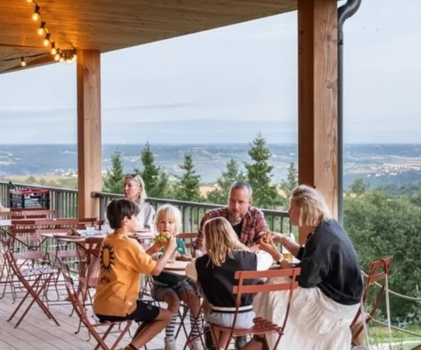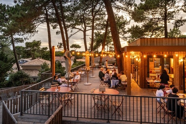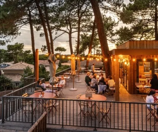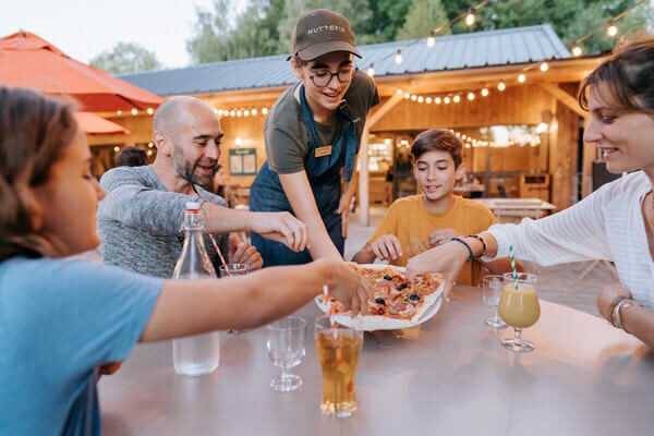 We share delicious homemade pizzas at the Café-Comptoir (or Restaurant) on the terrace with its festive atmosphere.