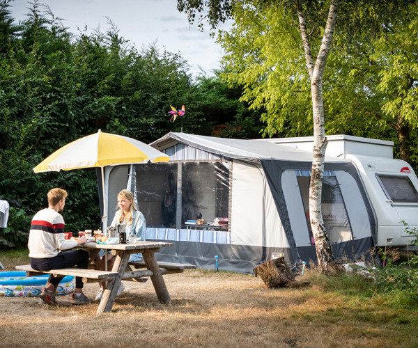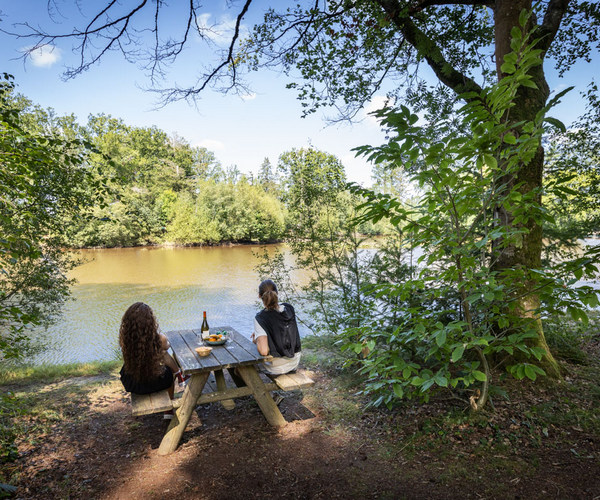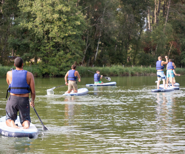 El Camping Huttopia Lac de Rillé ofrece acceso directo al lago, ideal para disfrutar de actividades como la pesca en familia o el paddle, disponible en alquiler en el camping.