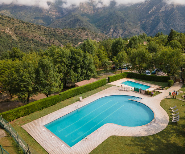 El camping se encuentra en pleno Pirineo catalán, a solo hora y media de Barcelona y a 40 minutos de la frontera francesa.