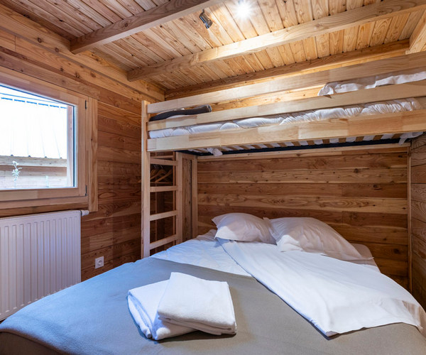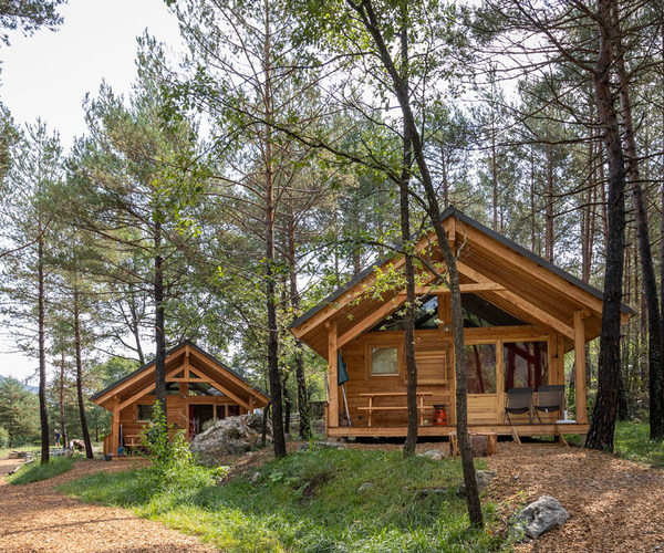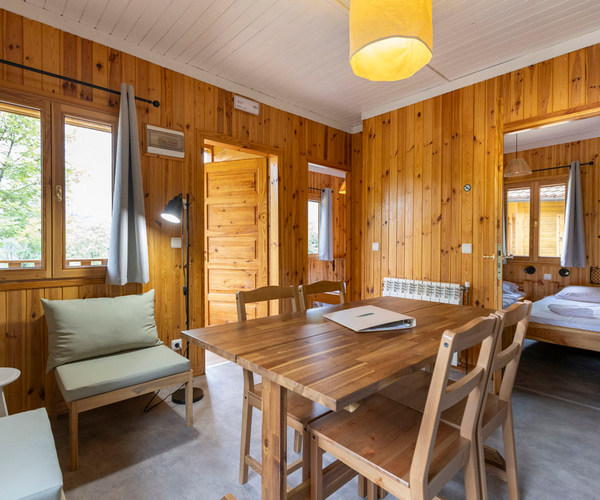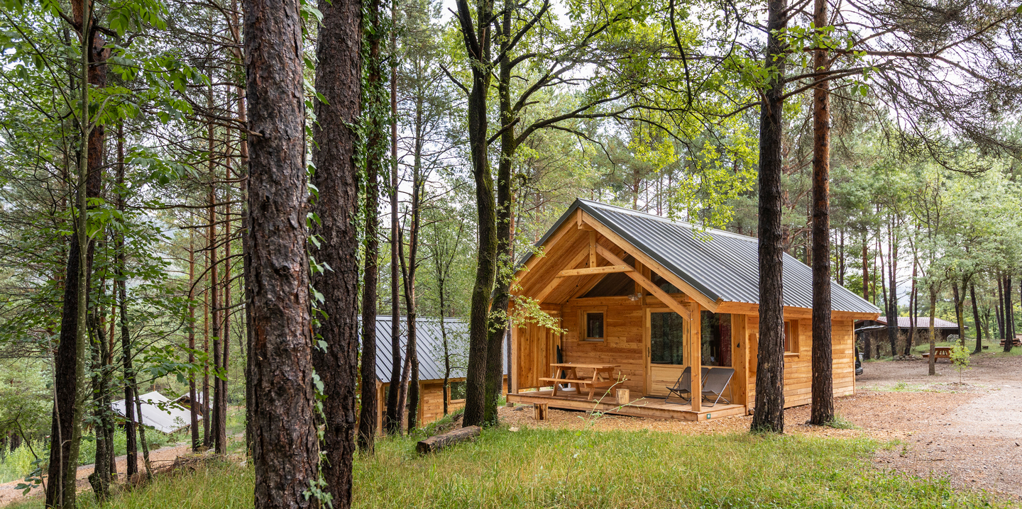 Nuestros alojamientos ofrecen una inmersión total en la naturaleza. En verano puedes elegir entre disfrutar de las noches bajo la lona en nuestra tienda Trappeur o instalarte cómodamente en un chalet Bois si prefieres una estancia más cálida. Tanto si buscas sencillez o comodidad, cada alojamiento garantiza una experiencia única en el Camping Huttopia Barcelona Pirineos.