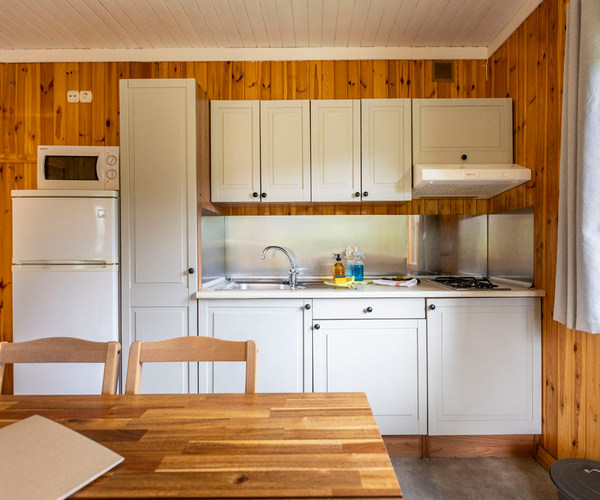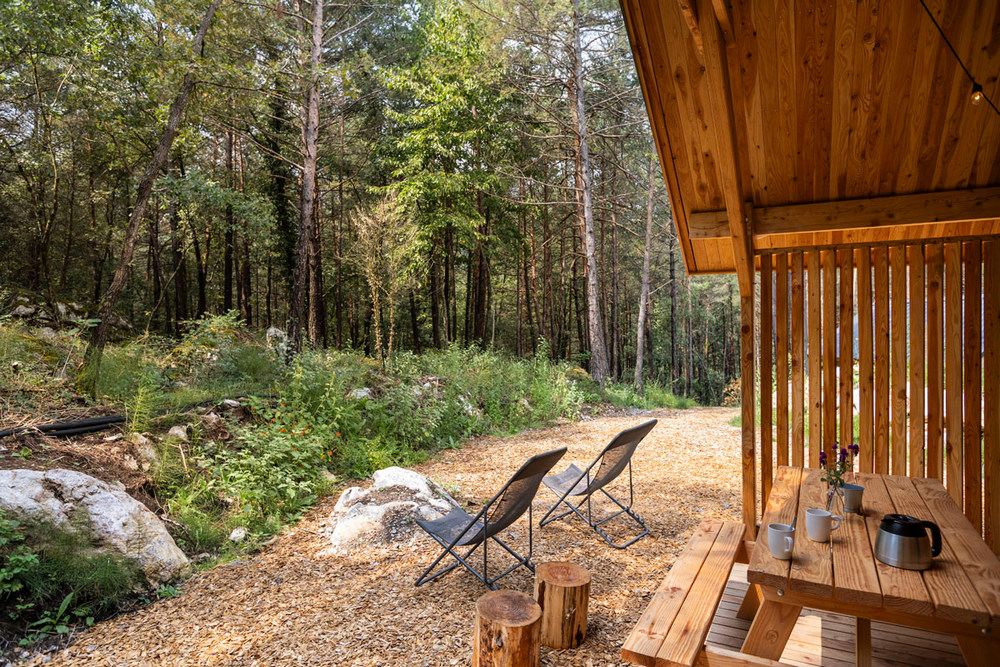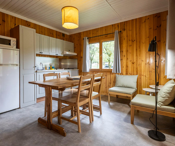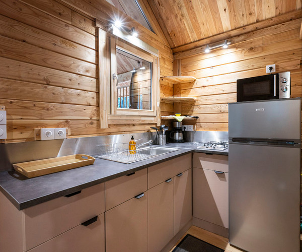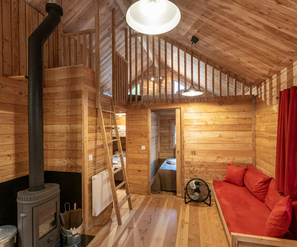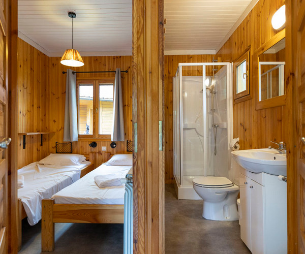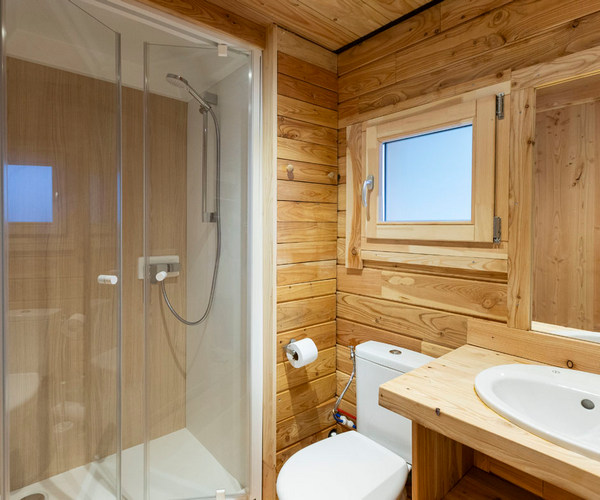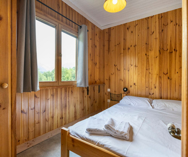 El chalet Bois de 35 m² está situado frente a la montaña catalana. Su arquitectura, del estilo tradicional de la región, garantiza comodidad en un entorno privilegiado. Disfruta de una cálida sala de estar con una zona de cocina completamente equipada. El espacio de noche se compone de dos dormitorios, uno con cama doble y otro con dos camas individuales. El baño cuenta con ducha, lavabo e inodoro. En el exterior hay una terraza de madera acondicionada para contemplar el paisaje circundante. El chalet, construido en madera en su totalidad, se integra perfectamente en el entorno de la montaña, para sumergirse del todo en la naturaleza.