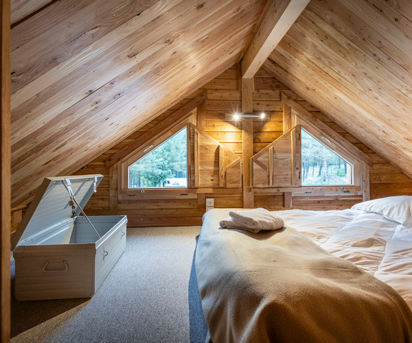 El chalet Montana Vista, amplio y luminoso, se integra en el entorno natural, con una estufa de leña que crea el ambiente ideal en las noches más frescas o después de una jornada de senderismo. Este chalet de madera ofrece un marco agradable para disfrutar de una estancia relajante e inmersiva, con vistas al bosque catalán desde la entreplanta.