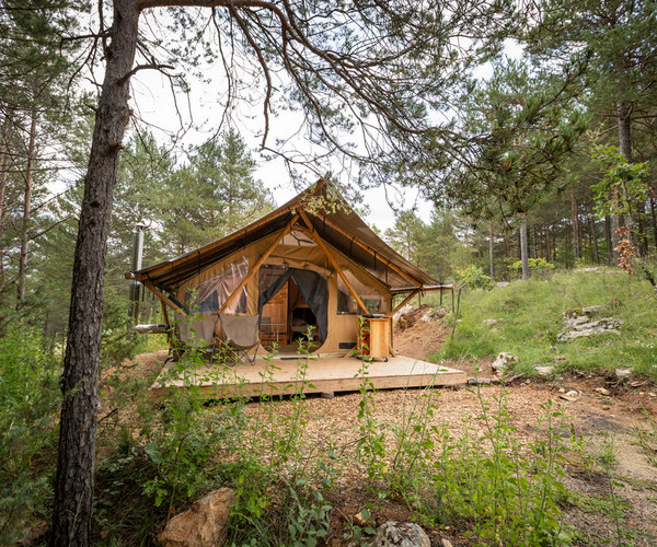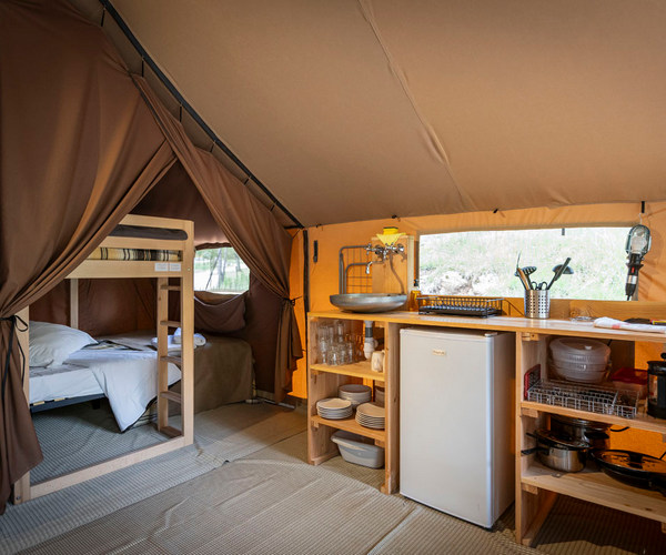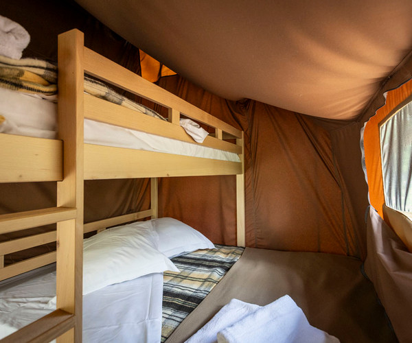 La tienda Trappeur aúna la autenticidad de la acampada con todas las comodidades modernas. Esta tienda, bajo el cobijo de los árboles, ofrece una inmersión absoluta garantizando la comodidad del «listo para acampar». Una estancia inolvidable entre aventura y confort, ¡con un entorno ideal para las familias!