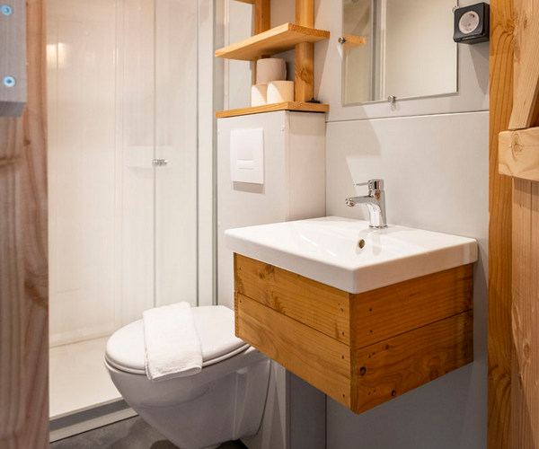 El camping Huttopia Barcelona Pirineos cuenta con dos bloques de baños accesibles las 24 horas. Duchas, inodoros, lavabos, fregaderos… Tienes todo a tu disposición para acampar de forma práctica. También contamos con baños para familias con niños pequeños y para personas con movilidad reducida.