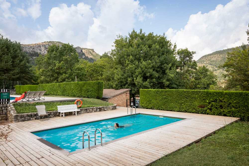 El camping ofrece también acceso directo, a través de un sendero forestal, al río Torrent de Bosoms, donde la escasa profundidad del agua permite refrescarse o hacer un picnic.