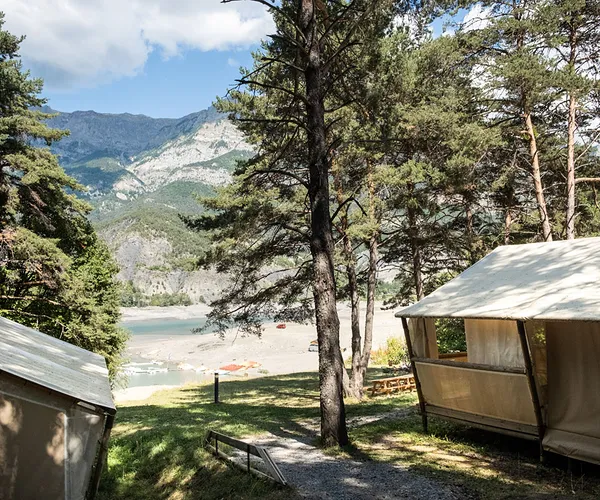 Op camping Huttopia Lac de Serre-Ponçon geniet u van een verblijf onder de sterrenhemel in een comfortabel chalet of een lodgetent van canvas & hout.