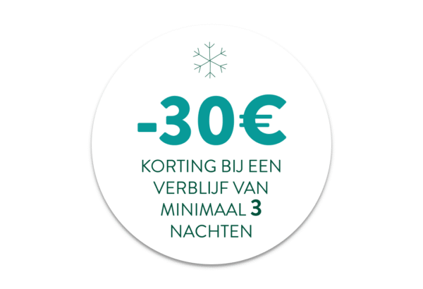 Bij boeking van je winterverblijf vóór 18/01/2026 met de code ILOVEWINTER: Profiteer van €30 korting vanaf 3 nachten en €70 korting vanaf 5 nachten voor elk verblijf tussen 06/01/2026 en 07/02/2026 en tussen 07/03/2026 en 06/04/2026.