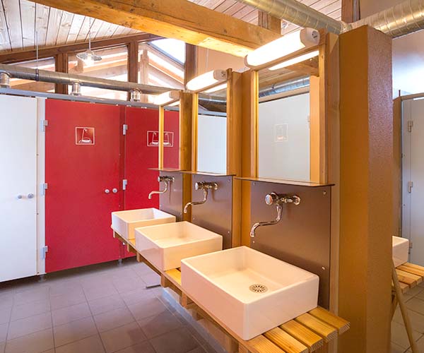 Les emplacements offrent branchements électriques, aire de service et espaces sanitaires chauffés pour un séjour confortable.