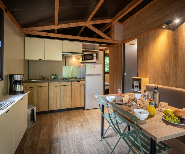 Dans chaque chalet en bois, on retrouve l’essentiel pour vivre au rythme de la nature : une cuisine équipée pour préparer de bons repas, un coin salon où se retrouver, une terrasse pour prendre l’air dès le matin, des chambres douillettes et une salle de bain privative. Et, selon les modèles, un poêle à bois vient réchauffer les fins de journée et prolonger les soirées. Une belle option pour s’installer quelques jours de plus, profiter du confort, sans jamais perdre le lien avec le grand air.
