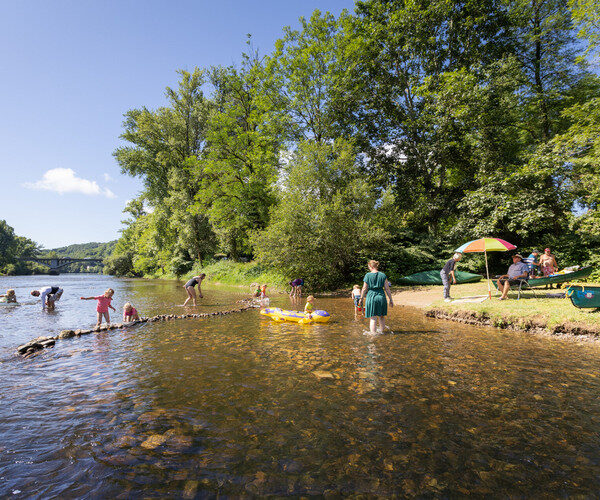 Pour les adeptes de baignade naturelle, le camping de Beaulieu-sur-Dordogne offre un accès direct à la rivière qui ravie les familles pendant l’été. Les eaux claires et peu profondes de la Dordogne permettent aux familles de se rafraîchir en toute sécurité, même les plus petits peuvent s’y amuser.