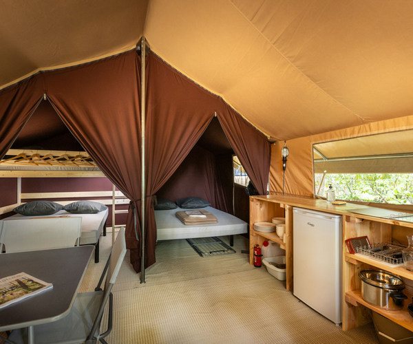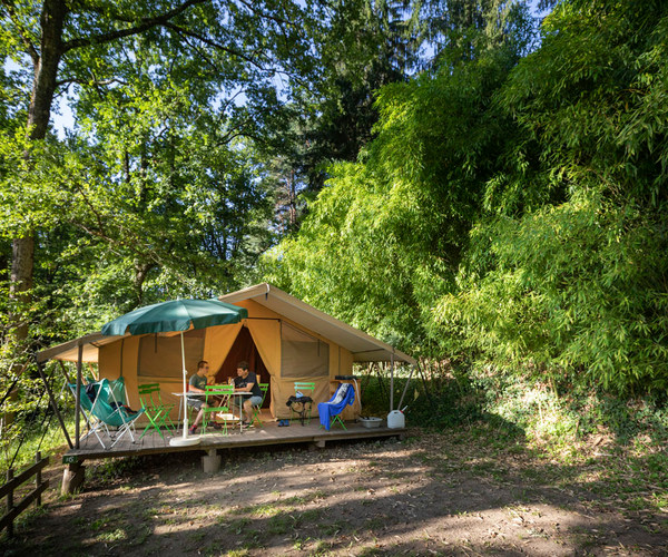 Pour celles et ceux qui recherchent plus de confort, les tentes toiles & bois Huttopia offrent une alternative idéale. Profitez de dormir sous la toile et de vous réveiller aux sons des oiseaux tout en conservant votre confort. Nos tentes peuvent héberger confortablement 2 à 5 personnes, en famille ou en couple, avec un coin cuisine, des espaces nuits confortables, une terrasse ouverte sur la nature. Sur certains modèles, vous profiterez également d’une salle de bain privative et d’un poêle à bois pour les temps plus doux.