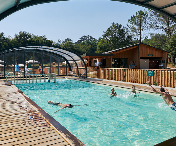 No Camping Huttopia Caminos de Galicia, dê um mergulho no nosso espaço aquático com uma piscina coberta aquecida e uma piscina infantil integrada, perfeitas para toda a família, bem como uma piscina exterior não aquecida para os dias de sol. Depois de um mergulho, relaxe nas espreguiçadeiras e desfrute do ambiente natural. Um local ideal para combinar diversão, relaxamento e convívio. (