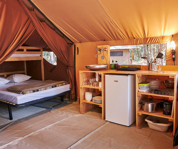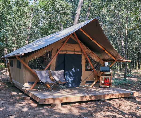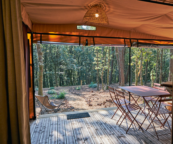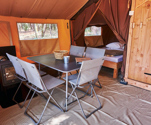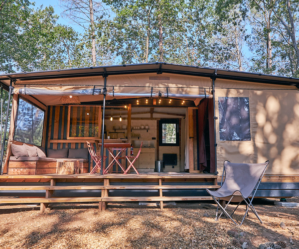 Escolha a experiência única de dormir debaixo de uma lona com todo o conforto de que necessita. O seu design acolhedor e natural integra-se perfeitamente no ambiente que o rodeia. Desfrute do terraço em madeira para partilhar refeições ao ar livre num cenário idílico.
