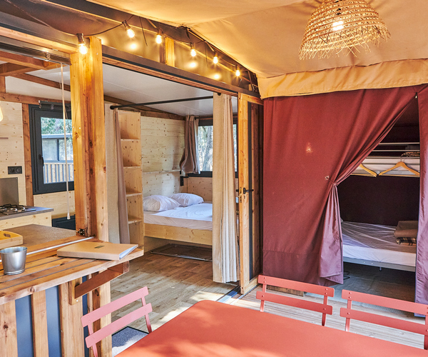 Desfrute de um alojamento onde o espírito do campismo sob lona se funde com o conforto de um chalé totalmente equipado. Situado sob as árvores da floresta, o Arizona oferece uma imersão total na natureza.