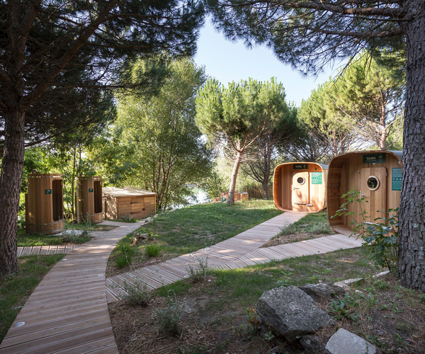 À Huttopia Dieulefit, profitez de quatre sanitaires, dont un entièrement accessible aux personnes à mobilité réduite. Spacieux, lumineux et parfaitement intégrés à l’environnement, ils sont conçus pour garantir confort et bien-être à tous les campeurs. Vous y trouverez des espaces modernes et propres, avec coin vaisselle pratique et zones familiales adaptées. Deux blocs sanitaires sont idéalement situés à proximité de la zone piétonne, pour un confort optimal au quotidien.