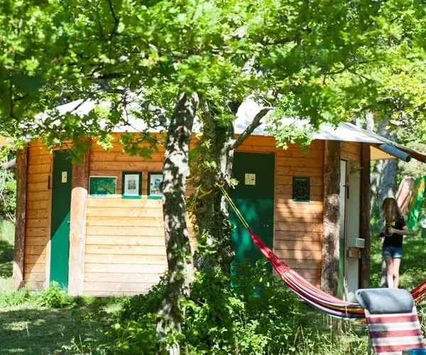 Une cabane spécialement adaptée aux personnes à mobilité réduite est disponible à la réservation. Cet hébergement est uniquement réservable par téléphone au +33 4 37 64 22 35