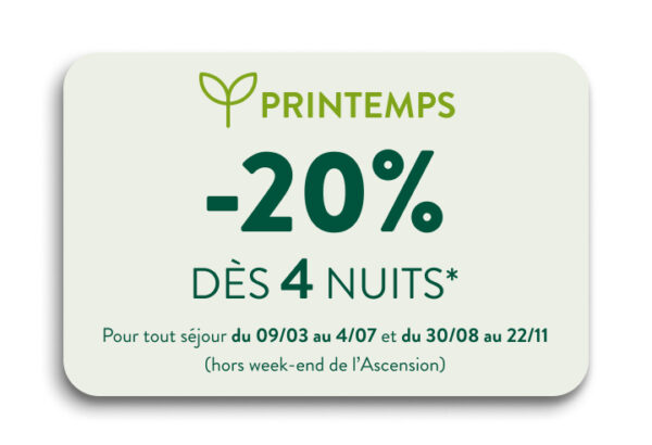 En réservant votre séjour 2026 avant le 07/12/2025 avec le code NATURE26 :